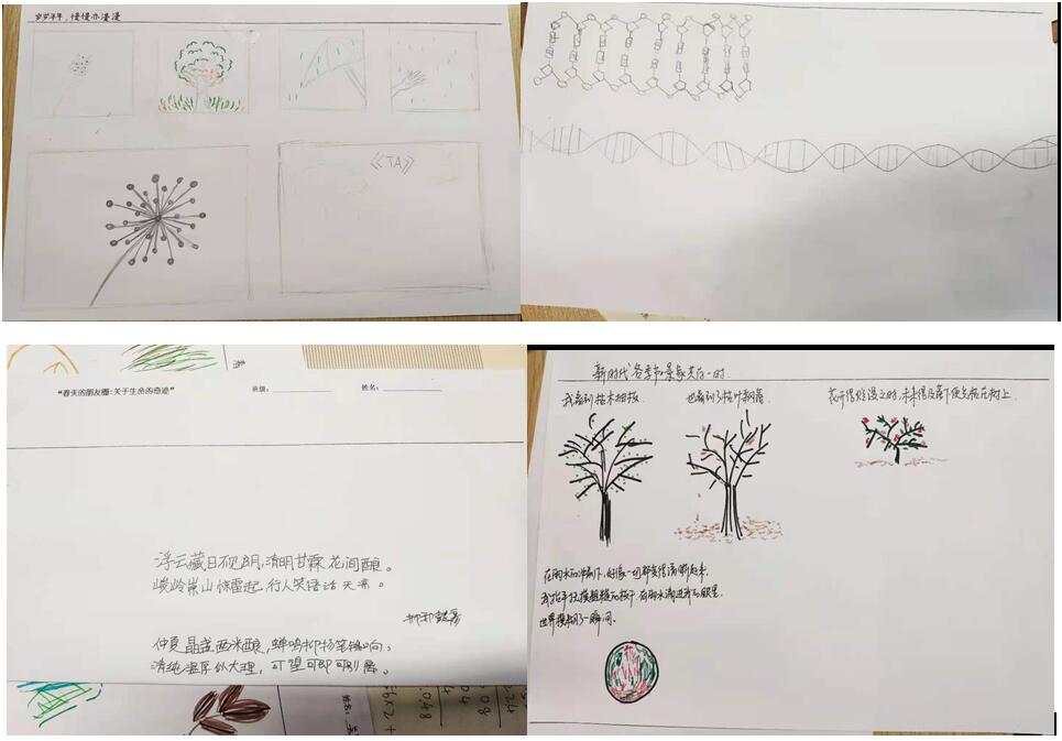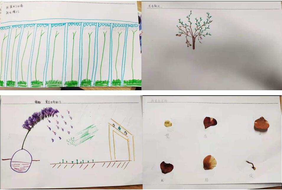 同學們帶回來的東西五花八門,有小草、樹葉、落花、樹枝、泥土等等,還有帶小動物回來的,螞蟻、蜘蛛、蛹!心理老師看著爬來爬去的蜘蛛笑:“你要把它養(yǎng)活哦!”學生:“老師我下課就把它放了!”更多的同學選擇將春天與感悟裝在腦海里帶回教室~